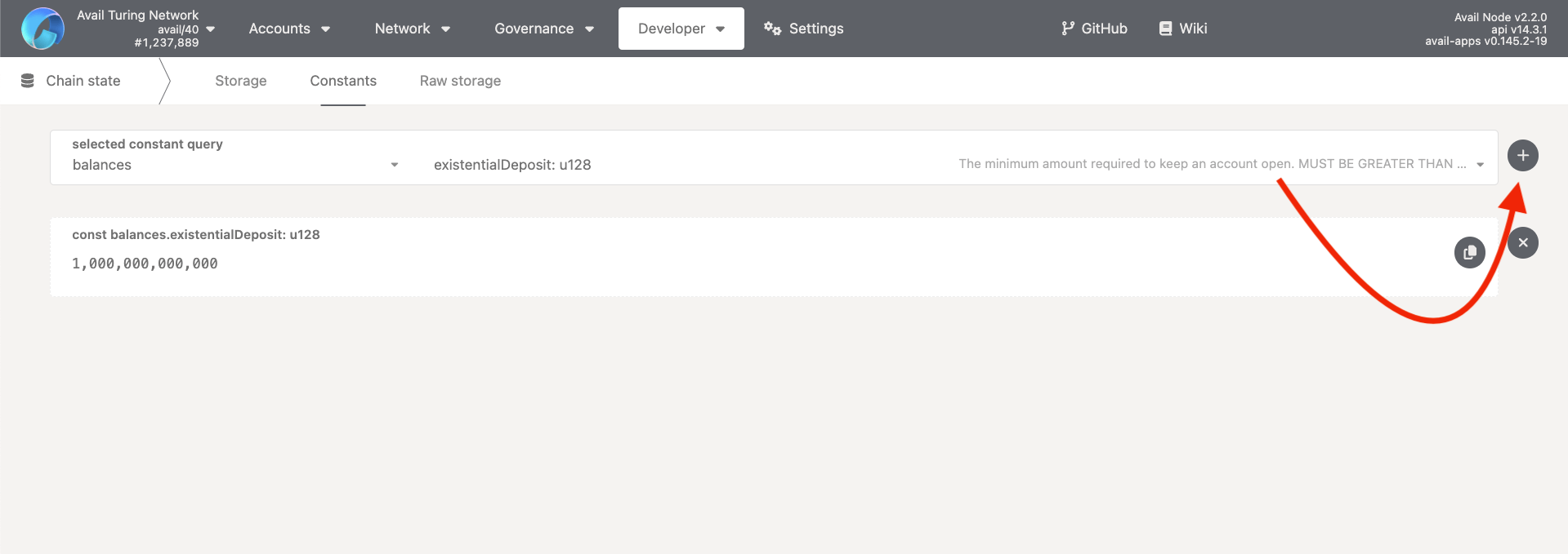 1. For example, to query the current value of the existentialDeposit of an account on Avail, which is the minimum amount required by an account to exist on the network, you can call the balances_existentialDeposit constant.