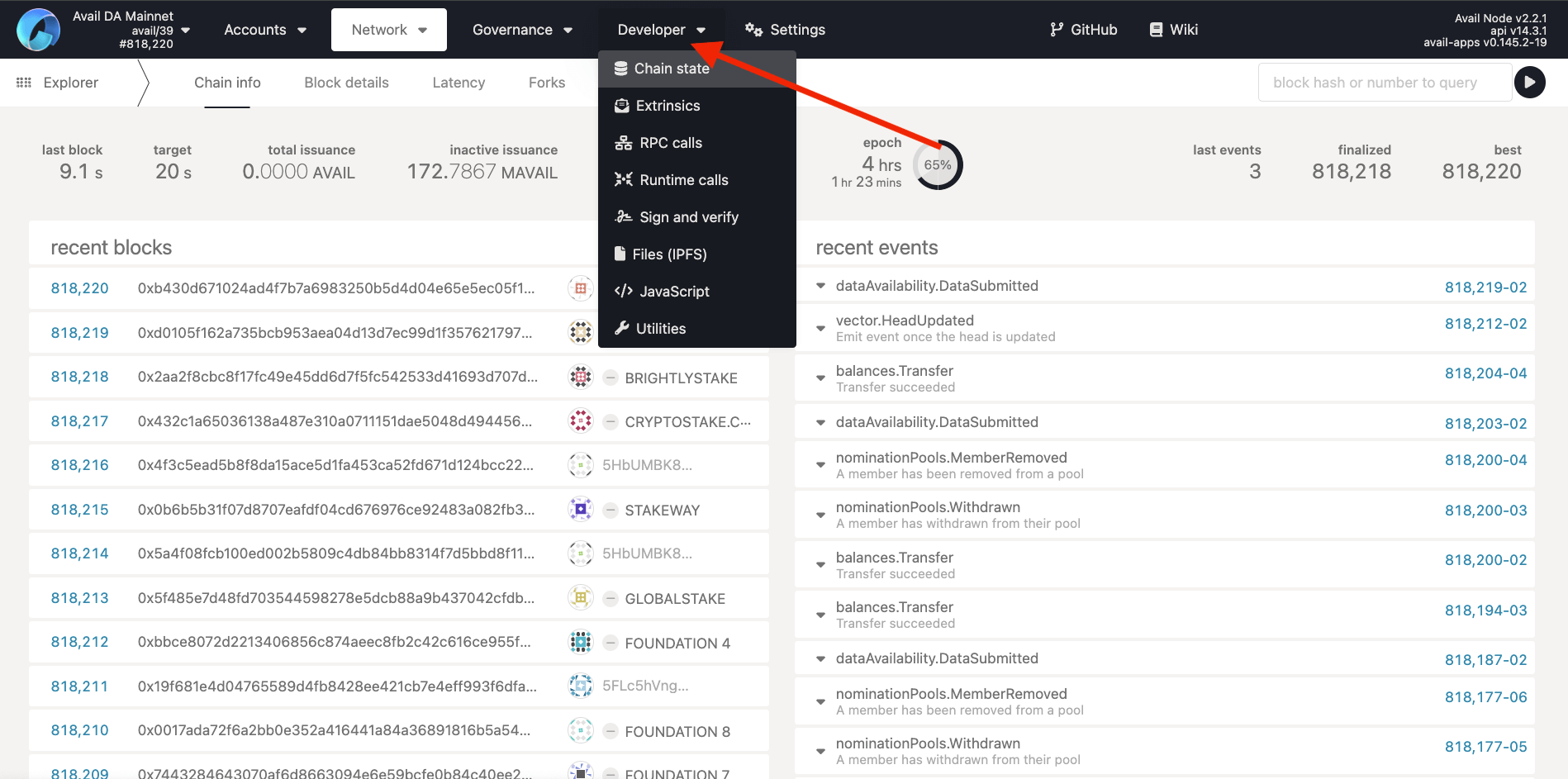 1. Avail Apps explorer : A dev-focussed explorer with powerful tools to work with the network.